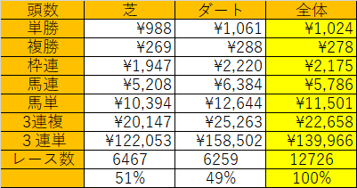 【03.芝ダート別】(全12726レース 2017-2020年)