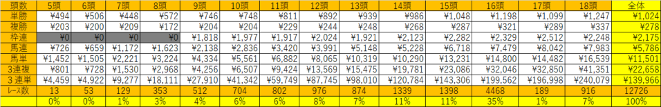 馬連と3連複は5,000円以下が圧倒的に多い。